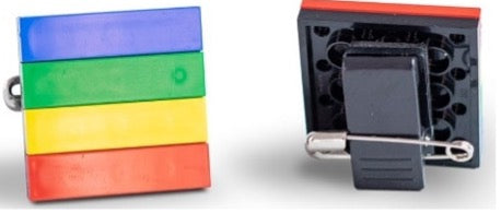 Pinned LEGO badge, for use in a workshop or attaching to a lanyard
